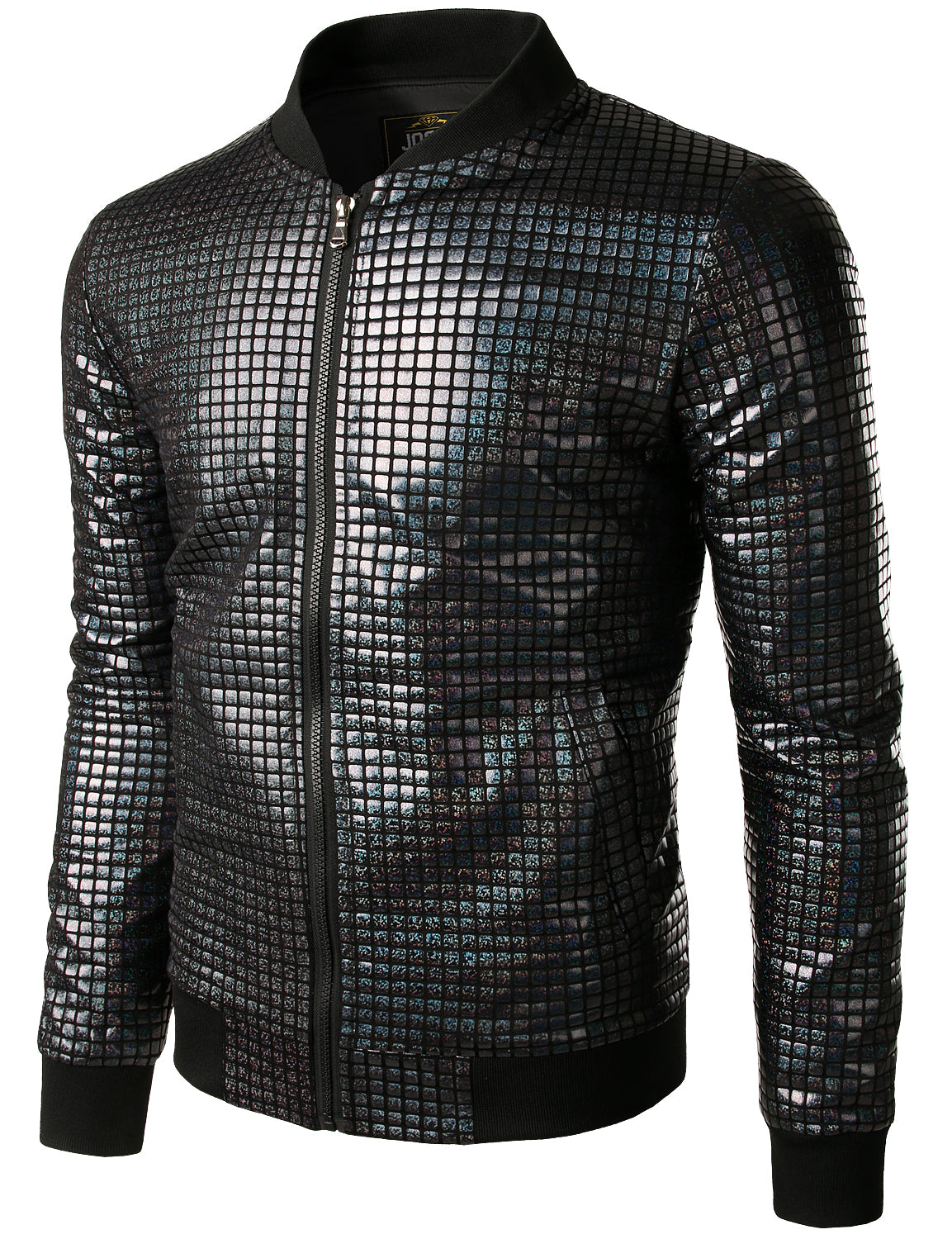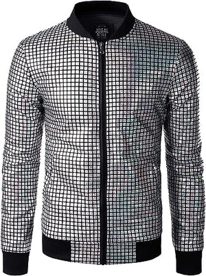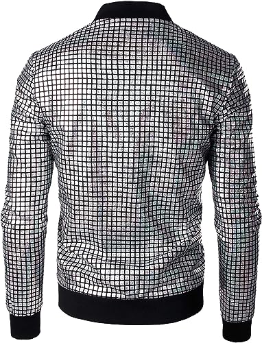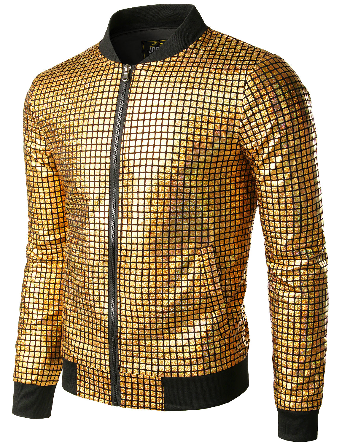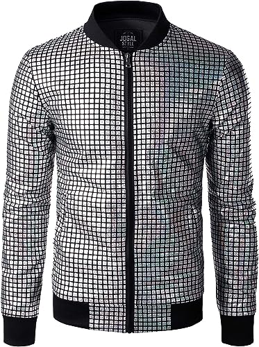JOGAL Men's Metallic Silver Jacket Gold 70's Disco Costume